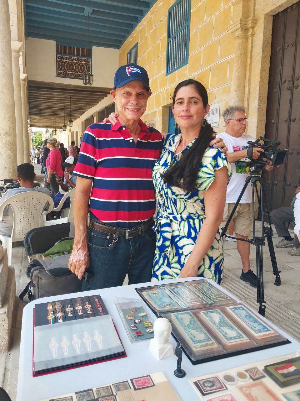 En las imagen  se puede observar al brillante colega Doctor Armando Fernández y su también colega e hija la señorita Annie Fernández Ares en su constante participación en actividades numismáticas
