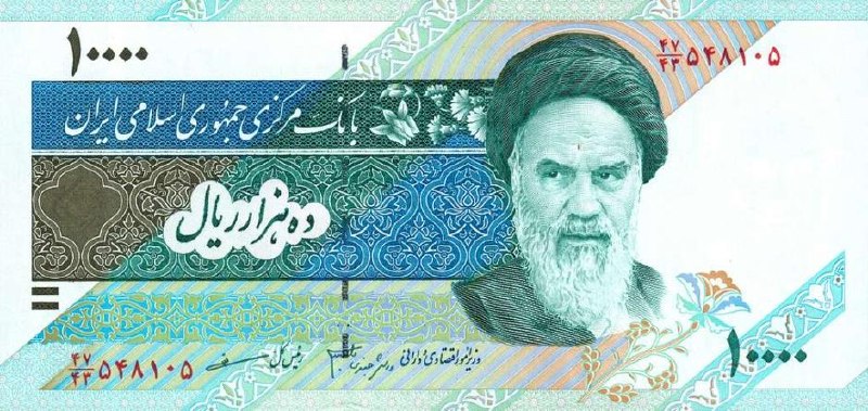 En la imagen Billete de 10000 rials iranís con la impresión de Ayatolá Jomeini