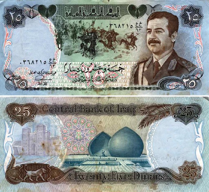En la imagen antiguo billete de 25 dinares iraquíes con la impresión de Saddam Hussein