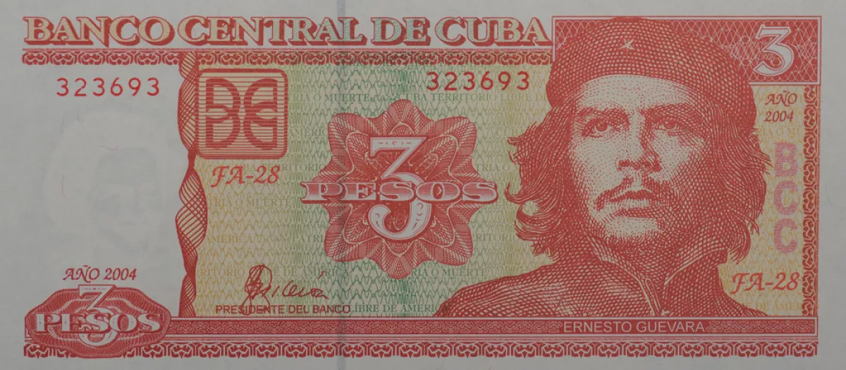 En la imagen Billete de 3 pesos cubanos con la impresión de Ernesto «Che» Guevara James Malone